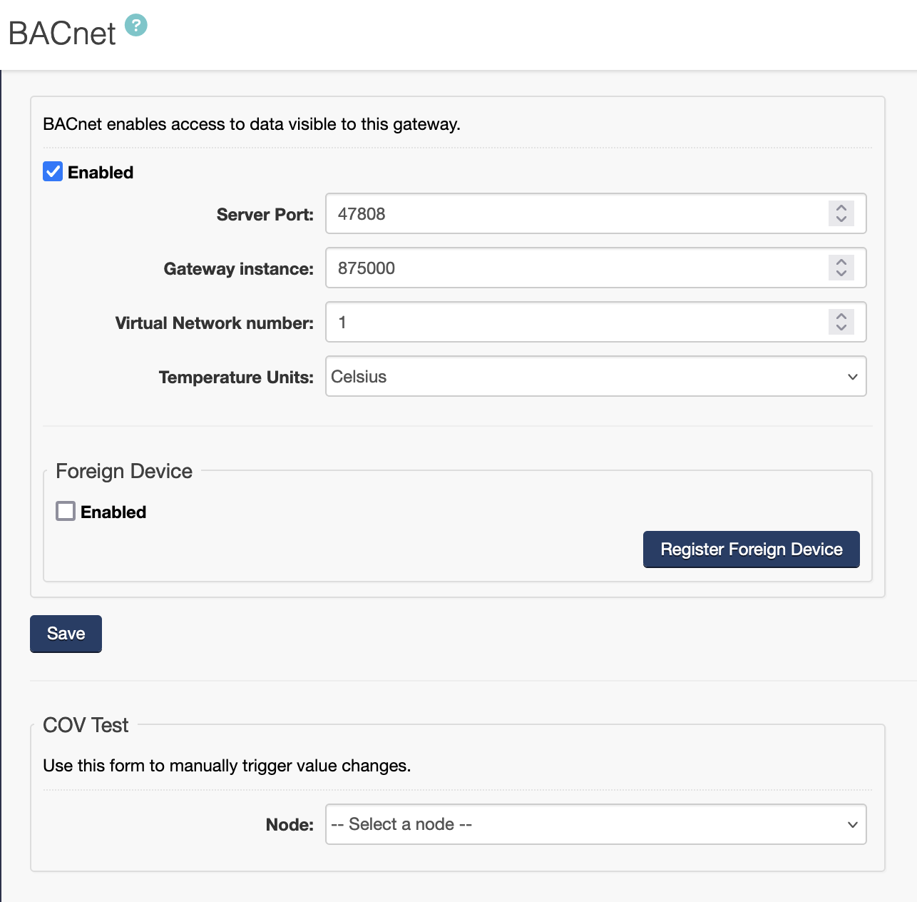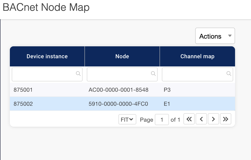 Verify your BACnet node mapping under Data Destinations → BACnet → Nodes