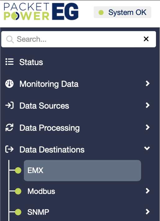 Navigate to Data Destinations → EMX on the left navigation bar.