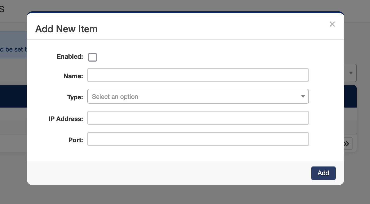 Complete the data on the “Add New Item” pop up menu, making sure the "Enabled" box is checked