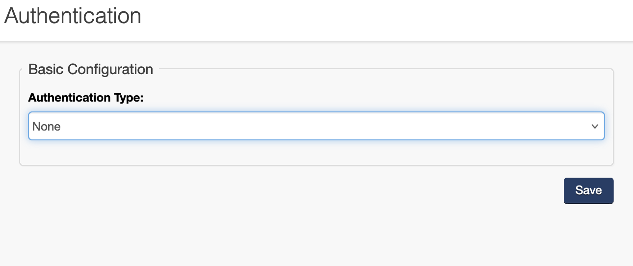 Configure your desired method of authenticating user access to the Gateway. Multiple options exist including "None" and "Local Account". To set up local users for access see Adding Authentication