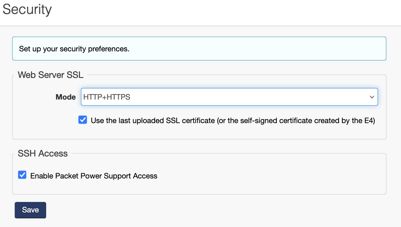 The default exchange protocol is HTTP + HTTPS. This can be upgraded to an SSL protocol using one of the three other optional settings by selecting from the “Mode” drop-down menu (1)