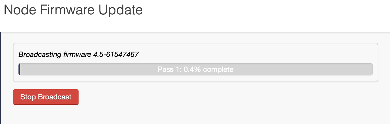 The progress of the update will be shown on a bar chart as well as the top right corner. The update transmission may be terminated at any time by clicking on the “Stop Broadcast” button.