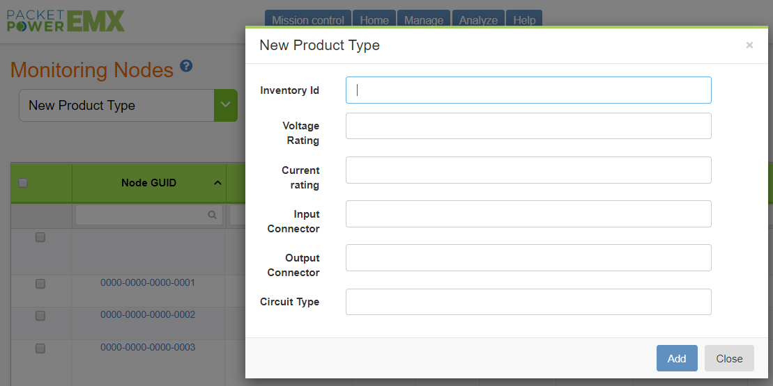 Choose the Product Type of the units you are adding by beginning to type the product number in the first box. Select the correct product type from the list that appears.
