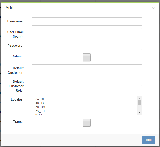 3. Fill out the data in the resulting form. Locales indicates the language displayed for the user; multiple languages can be selected.
