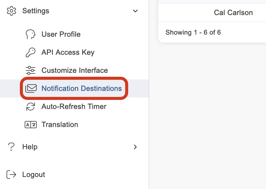 Navigate to Settings > Notification Destinations