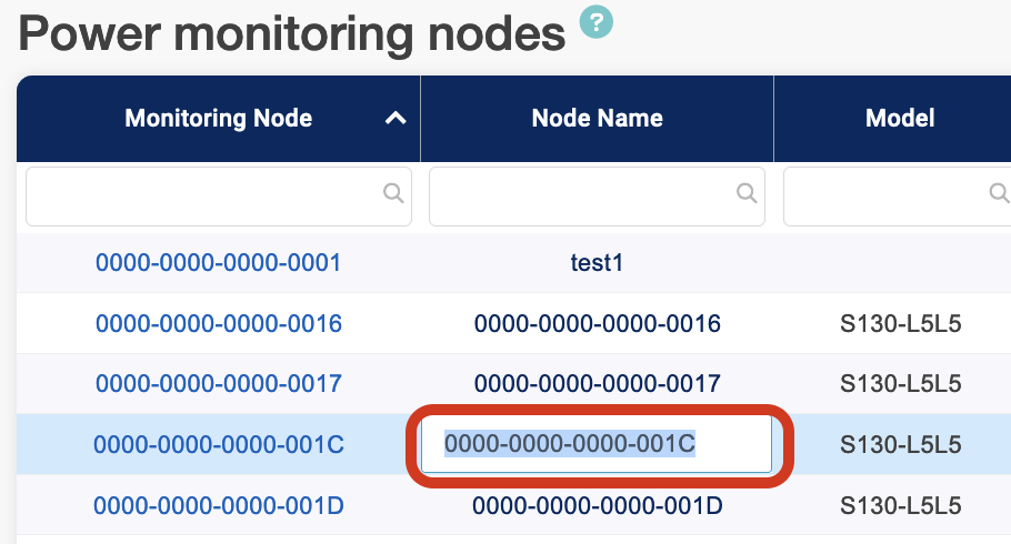 You can create friendly names in addition to the 16-digit ID number (e.g., A800-0000-0000-1234) for a monitoring node. Navigate to Standard Views → Node Inventory and then click the “Node Name” field to edit.