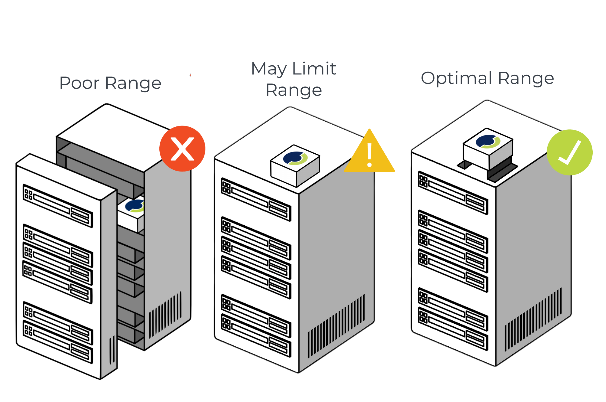 Always try and place Gateway(s) as high as possible within line of site to monitoring nodes. Never place Gateways inside metallic cabinets.