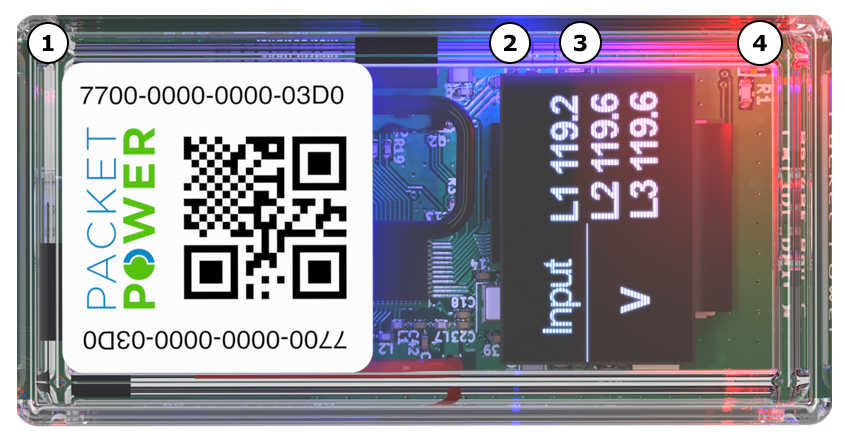 Startup sequence | The Packet Power logo and name are displayed when the device first powers up, followed by a sequence of power on self-test (POST) display pages. |