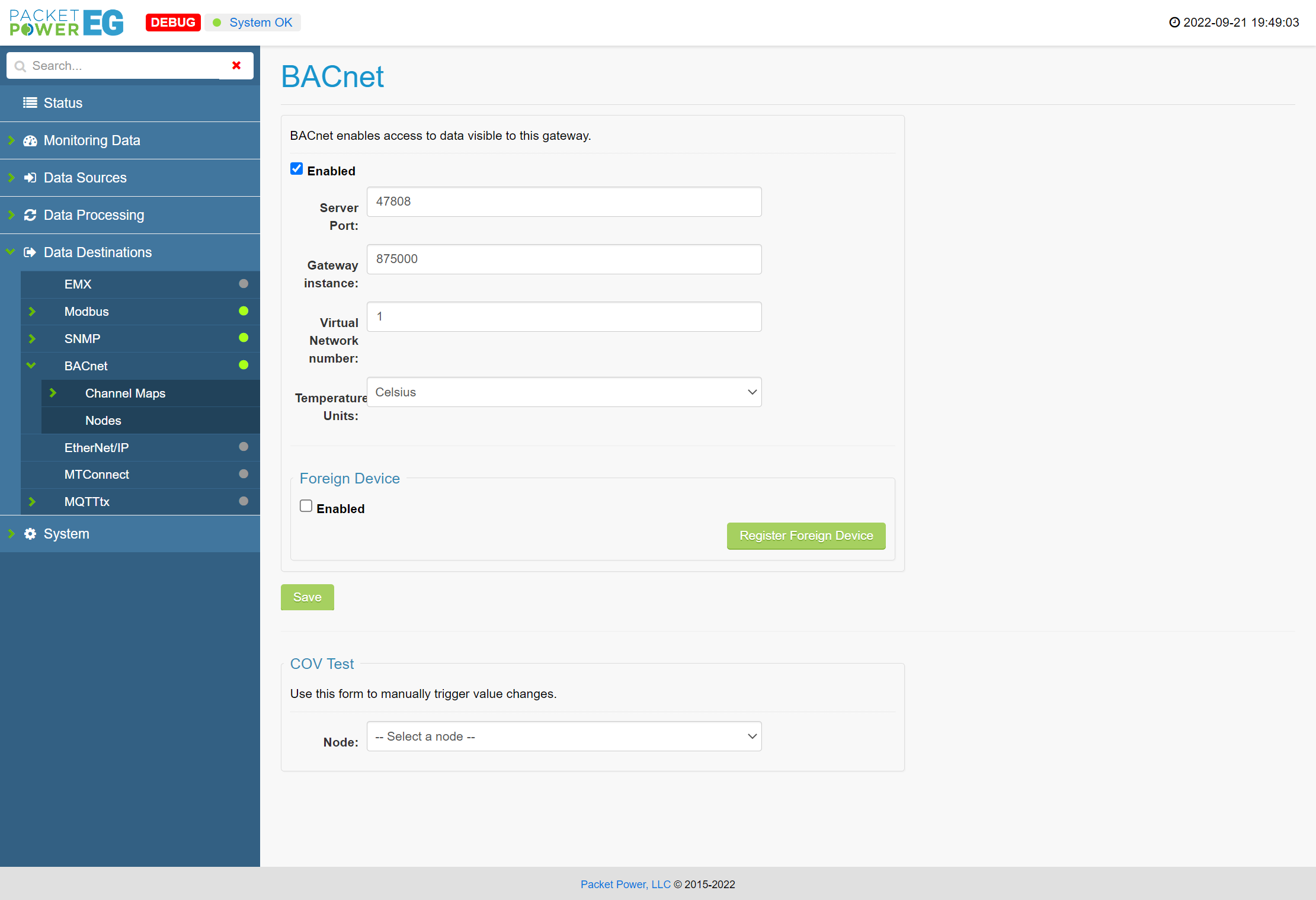 EG4 Ethernet Gateway licensed and configured for BACnet