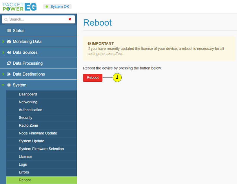 The Gateway will go offline and will reboot and reconnect to the network and all monitoring nodes once the reboot process is finished. This does not erase any configuration settings.