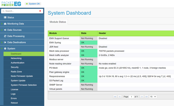 The Dashboard feature is a diagnostic tool for use by Packet Power and authorized partners. It may not be exposed on all Gateways.