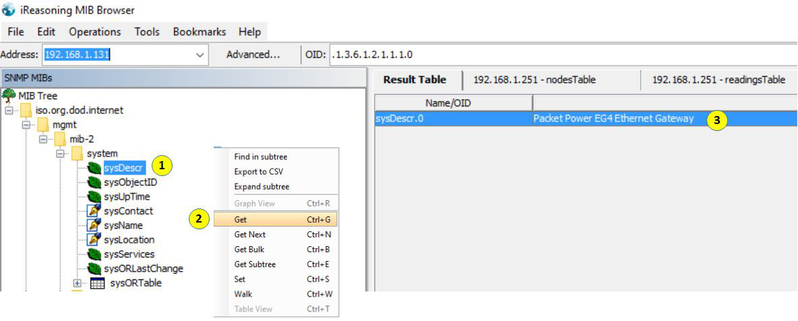 Right click on the sysDescr file and and select “Get” from the pop up menu