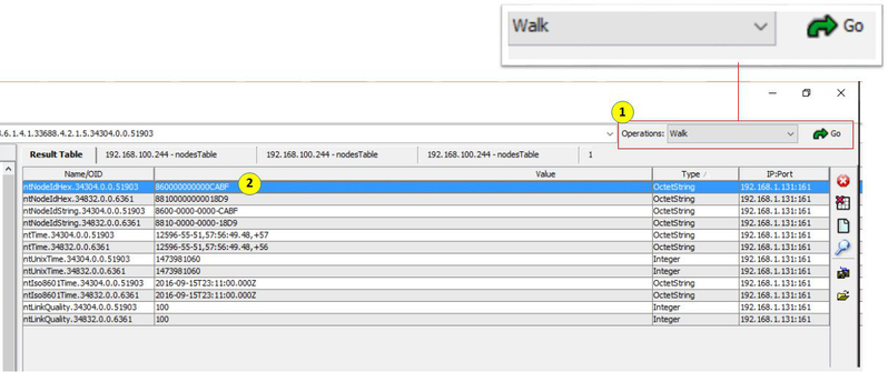 Click “Walk” on the Operations bar and then click “Go”; a table will be generated returning all MIBs