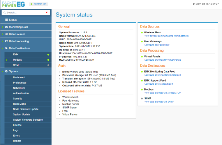 *Data can be provided simultaneously to the EMX Portal while serving Modbus TCP/IP or SNMP data.