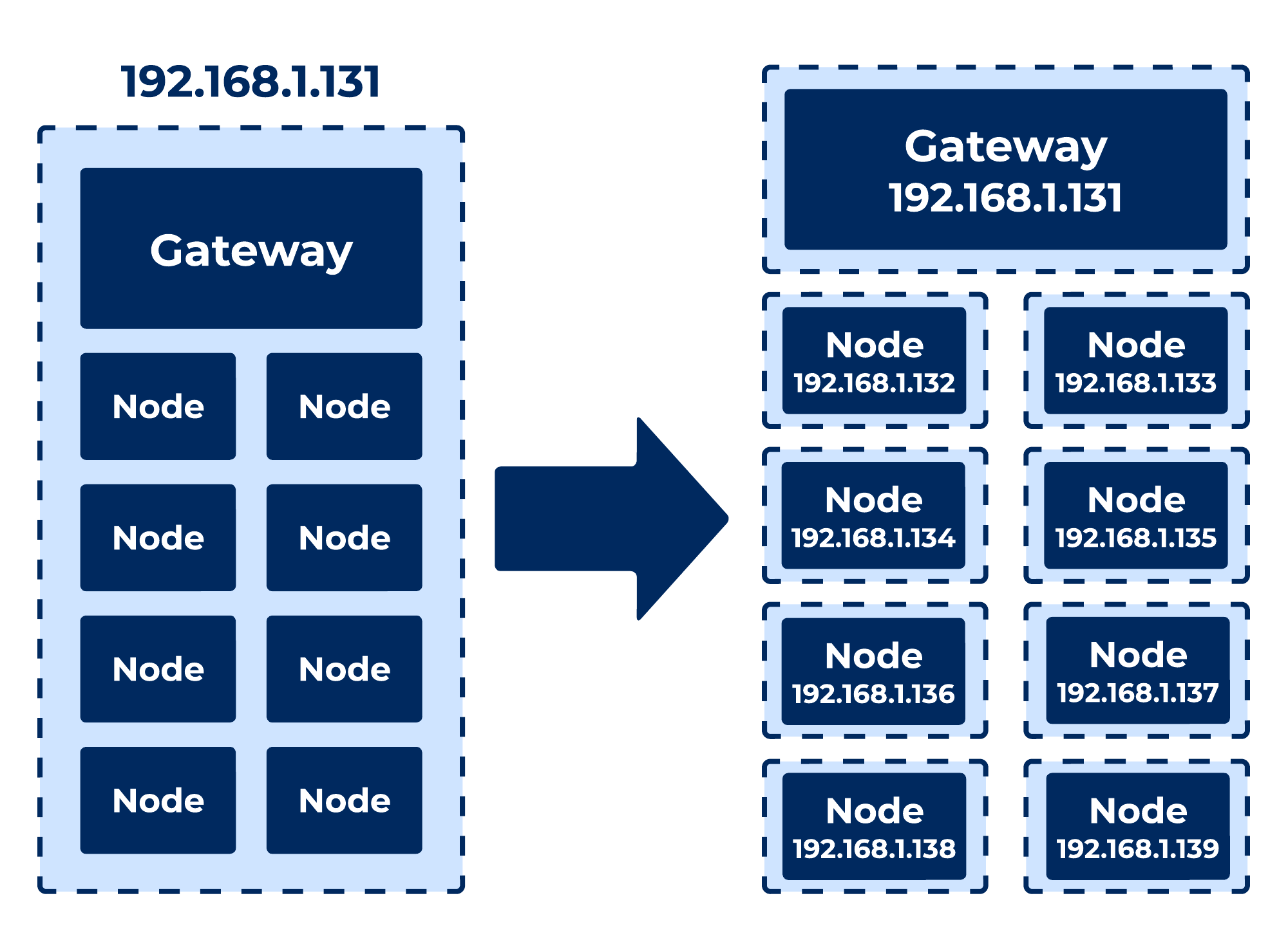 The Gateway will have a unique IP and agent and each node will have a unique IP and agent