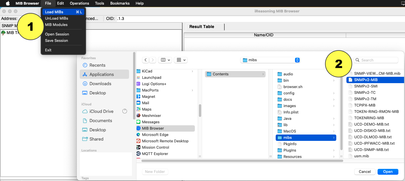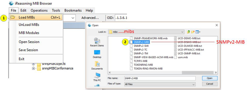 Load the MIB for “General SNMP management” using the [Load MIBs] function under the [FILE] menu