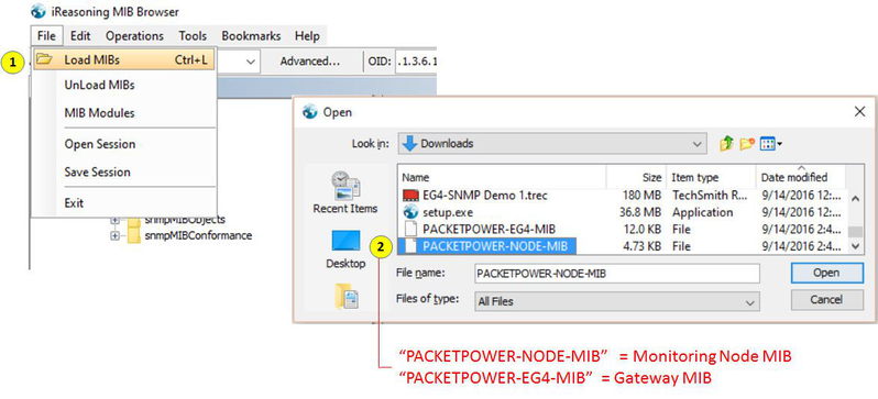 Load the MIB for Gateway and/or monitoring nodes using the [Load MIBs] function under the [FILE] menu