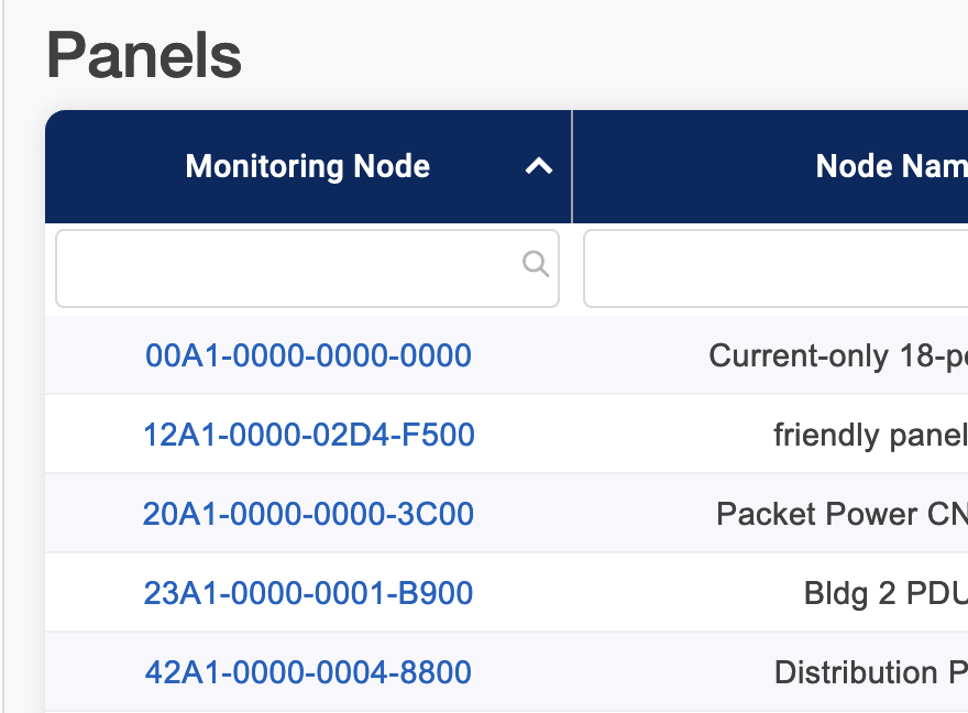 Friendly names make dashboards, reports and tables much easier to understand than a node's 16-digit ID (e.g., A800-0000-0000-1234). You may assign friendly names to power monitoring nodes, panels, environmental monitoring nodes, gateways, hubs and data diodes.