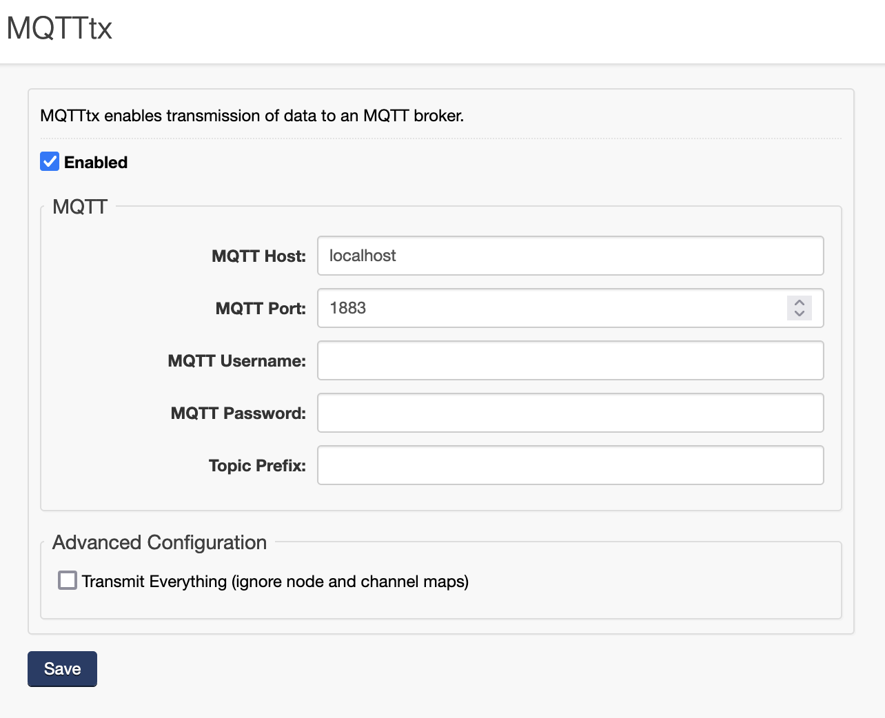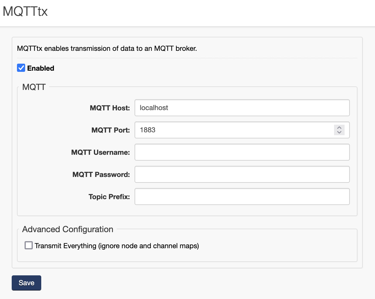 To publish all messages from all nodes you must select the “transmit everything” option. This will publish all node readings for all nodes connected to your gateway, whether or not you have added them to the node map.