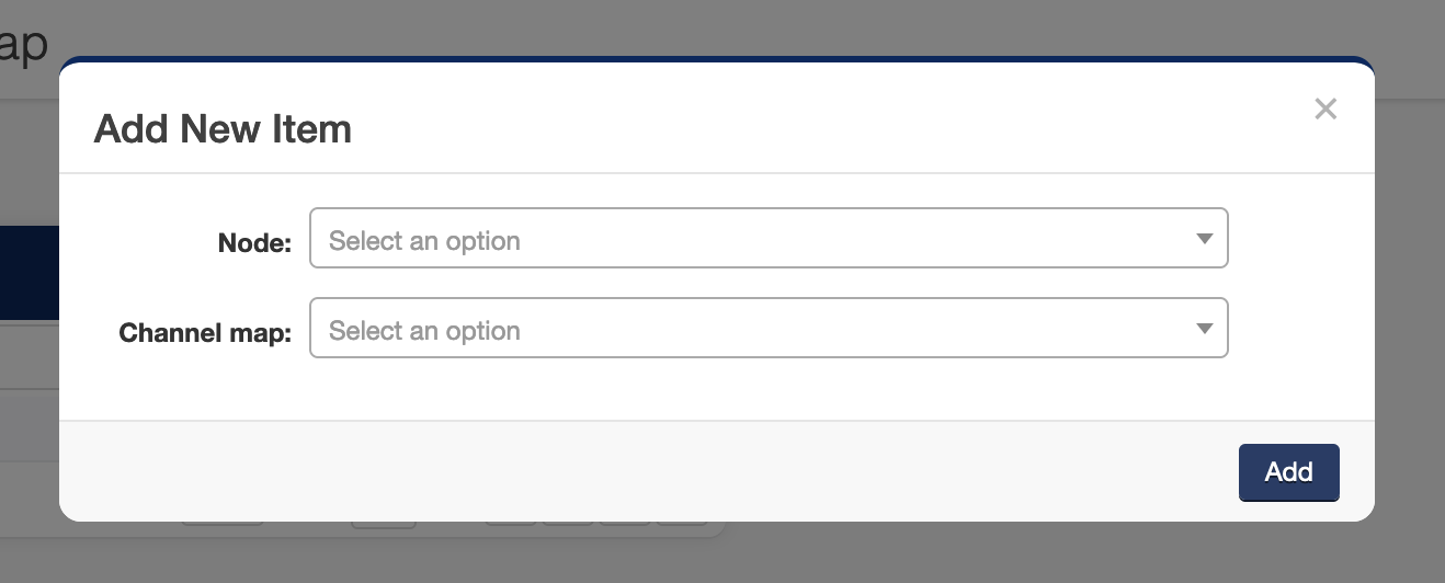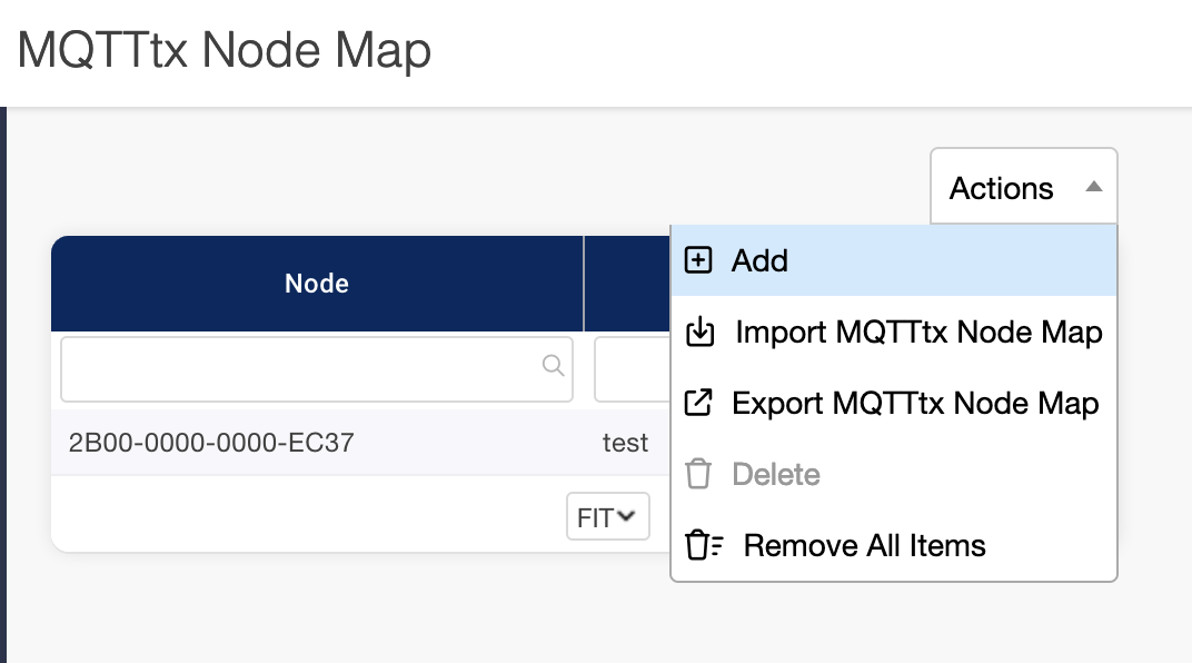 To publish a nodes readings to the MQTT stream, select a node and a channel map under Data Destinations → MQTT → Nodes. Use the “add” option in the Actions drop down. This will publish all readings from the node which correspond to the readings selected in the given channel map. If you intend to publish all readings from a node you can select “none” from the channel map drop down.