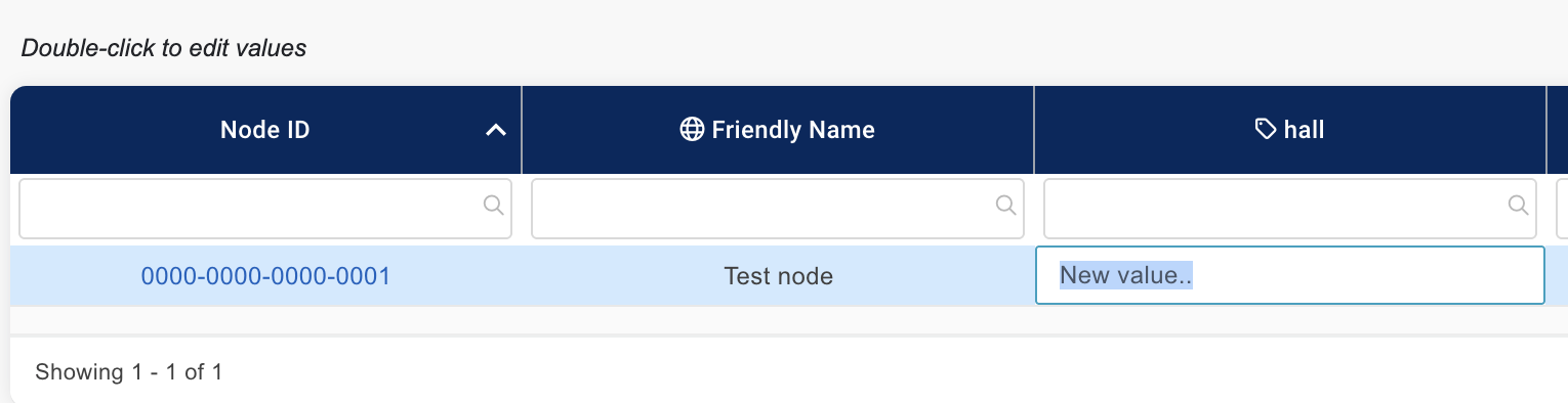 Upon entering this interface, you will be presented with a table of each node in your currently selected account. Each attribute will be present as a column. If you have sufficient privileges, you can double-click on each table cell to edit the node attribute value for a particular node.
