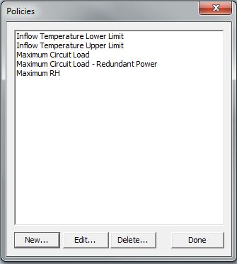 1. Click on Define Policies in the Notifications area in the Power Manager ribbon. The system will display the Policies dialog box with several example policies.