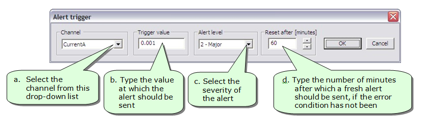 3. Click on the OK button to close the Alert trigger dialog box and return to the Alert configuration dialog box.
