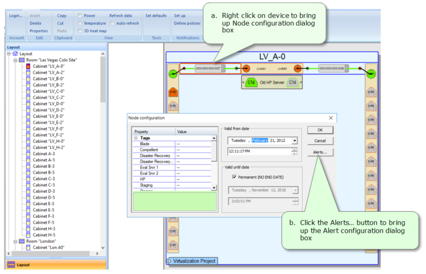 You should see an ALERT next to the device you selected in the cabinet view in Power Manager.