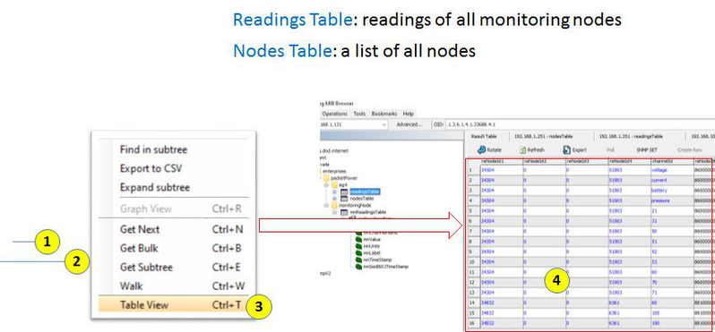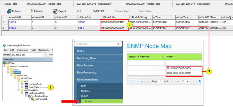 Clicking on a reading will allow you to associate it with a specific node ID via the OID