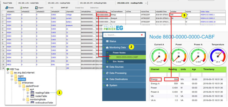 To get data in a more structured format select the “readingsTable” or “nodesTable” under the EG4 directory [private>packetPower]
