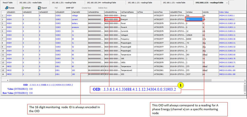 Any reading OID will always correspond to a specific channel for specific node (ie. energy on phase A for a particular node)