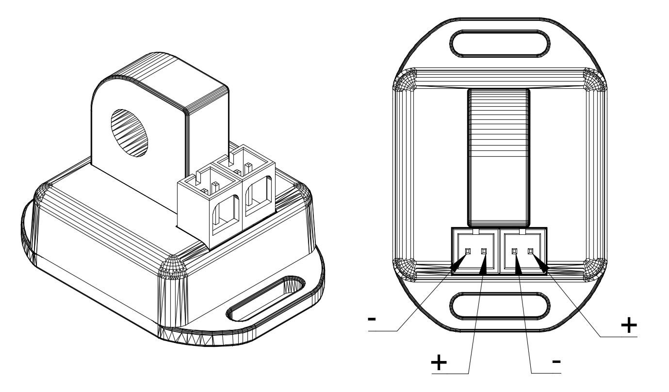 These monitors have a solid core current transducer (CT) permanently attached to them, and the whole assembly is mounted on the conductor. Some of the steps are common to the procedure to install with external CTs.